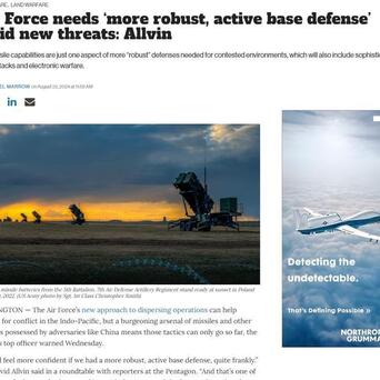 空军官员已经反复强调需要增加防空,特别是考虑到在军种的敏捷战斗部署(ACE)方法下,一些作战将更加严峻和地理上分散。阿尔文说,ACE概念也将促使一些艰难的决定,例如在哪里安置关键资产。